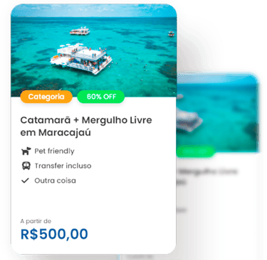 Foi idealizada uma seção dentro dos cards das atividades para que os lojistas possam destacar atributos relevantes, como "seguro incluso" ou "atividade pet friendly". Esse recurso visa facilitar a tomada de decisão dos clientes e evidenciar informações estratégicas para a escolha do passeio.