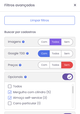 Agora é possível encontrar atividades rapidamente por nome, ID ou tag. Os filtros foram reorganizados para facilitar a seleção e incluir opções avançadas.
