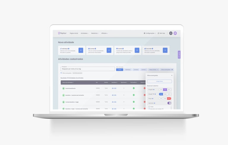 Paytour | Listagem de Atividades: Encontre e gerencie com agilidade